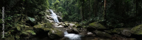 © Ayou.Y, Fototapeta premium Lush rainforest waterfall hdri panoramic view equirectangular environment map