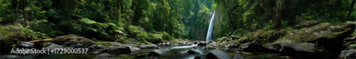 © Ayou.Y, Fototapeta premium Lush rainforest waterfall hdri panoramic view nature exploration tropical environment