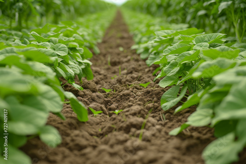 © liamalexcolman, Obraz premium Lush Soybean Field Row Perspective