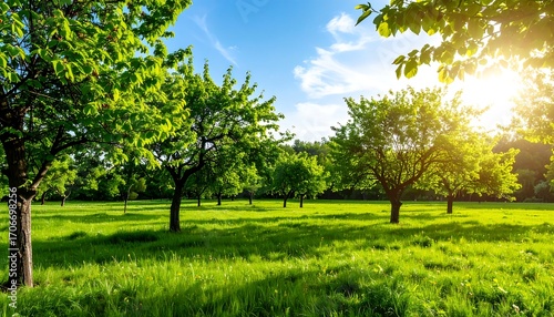© taeh, Fototapeta premium Lush spring orchard