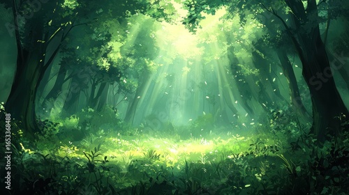 © Adisha, Obraz premium Lush, sunlit forest clearing