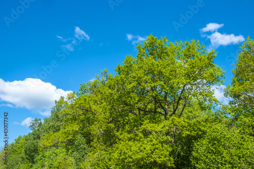 © Lars Johansson, Obraz premium Lush tree canopy at a blue sky