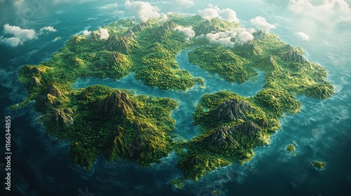 © tydeline, Fototapeta premium Lush Tropical Archipelago: An Aerial View of Island Paradise