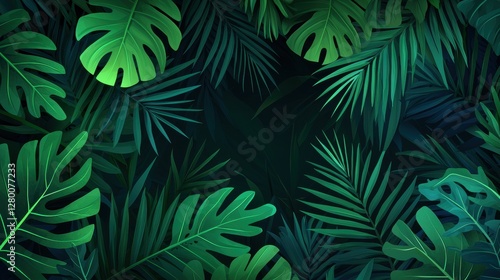 Fototapeta premium Lush tropical foliage background with vibrant green leaves