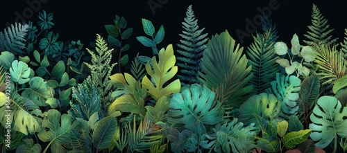 © JOYKO, Fototapeta premium Lush tropical foliage border