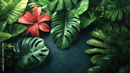 Fototapeta premium Lush Tropical Foliage with Green Leaves and a Splash of Color