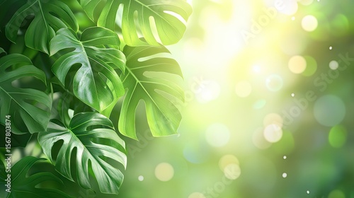 Naklejka premium Lush tropical leaves bathed in soft sunlight.