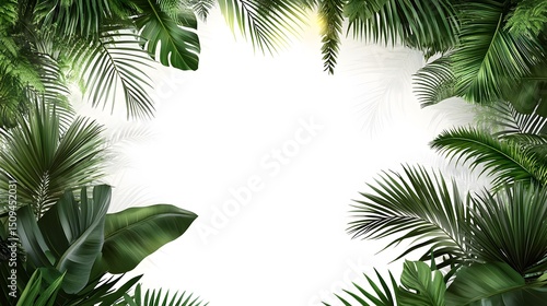 Obraz premium Lush Tropical Leaves Frame White Background Botanical