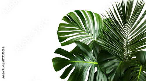 © Maestro, Fototapeta premium Lush tropical leaves on black background, cut out transparent