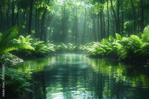 © Donna, Obraz premium Lush Tropical Pond Reflections in Balata Garden Martinique