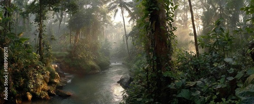 Fototapeta premium Lush tropical river flowing through a dense rainforest