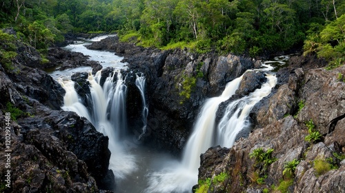 © Samsudi, Naklejka premium Lush Tropical Waterfall