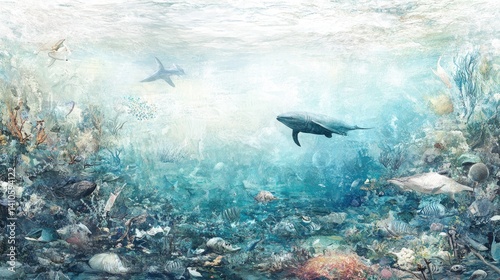 Fototapeta premium Lush underwater scene depicts diverse marine life.