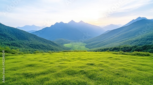 Obraz premium Lush valley, mountain panorama, tranquil scene