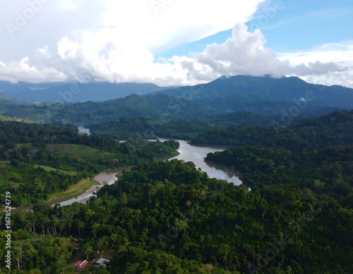 Naklejka premium Lush valley with river and mountains