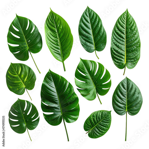 Obraz premium Lush, vibrant green leaves, isolated on black background