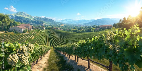 © gen_pick, Fototapeta premium Lush Vineyard in Summer Ideal for Wine Enthusiasts