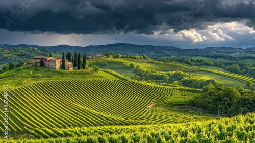 © AmStock, Fototapeta premium Lush Vineyard Under Overcast Sky