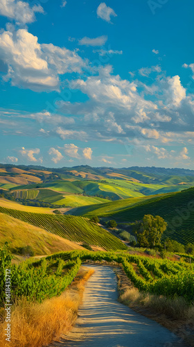 © Wang, Naklejka premium Lush vineyards, rolling hills, blue sky, sunlight
