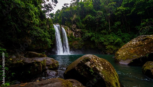 Fototapeta premium Lush waterfall cascading into a tranquil pool (2)
