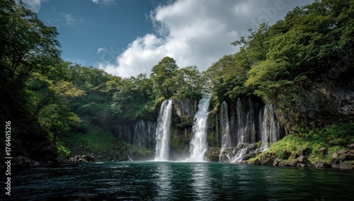 © Vuvu, Fototapeta premium Lush waterfall cascading into a tranquil pool (1)