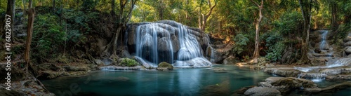 © muhammad, Obraz premium Lush Waterfall cascading into a tranquil pool