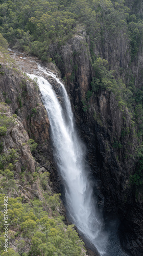 © Nittaya, Fototapeta premium Lush waterfall cascading into gorge surrounded by dense forest