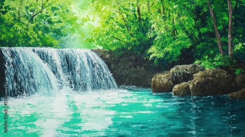 Fototapeta premium Lush waterfall cascading into turquoise pool