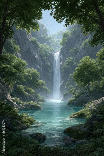 © arifyoga35, Fototapeta premium Lush waterfall in a secluded valley
