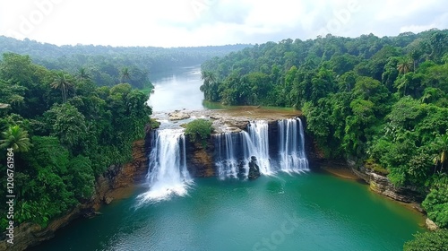 © Suryanto, Fototapeta premium Lush Waterfall in Tropical Forest