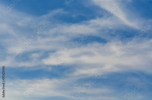 Fototapeta premium lush white cirrus clouds against the blue midday sky