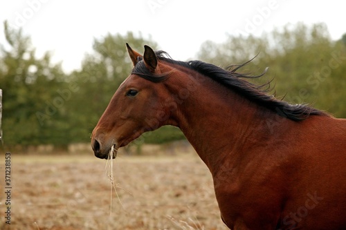 Fototapeta premium Lusitano Horse, Stallion eating Grass