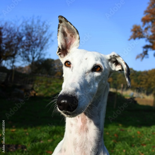 © mfotohaus, Obraz premium lustiger weißer Greyhound