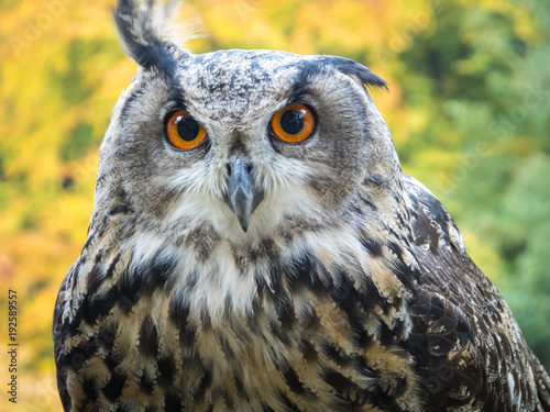 Fototapeta premium Lustiges Portrai eines Uhu (Bubo bubo)