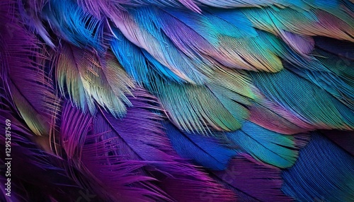 Obraz premium Lustrous Feather Veil – Intricately detailed feathers radiating a soft, multicolored glow.
