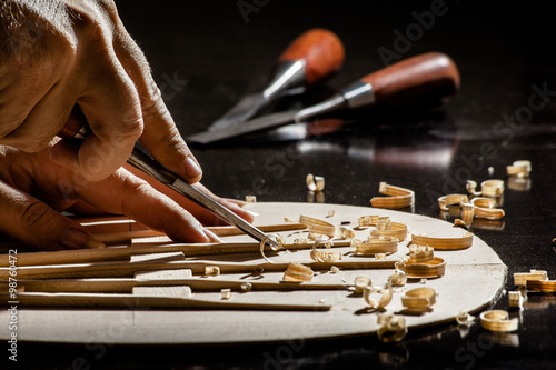 Naklejka premium Luthier making top of guitar