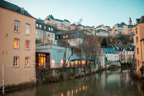 © Solidasrock, Obraz premium Luxembourg, February 01, 2024: General view from Luxembourg during twilight.