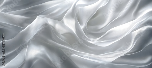 Fototapeta premium Luxurious Abstract Background of White Satin Silk Fabric with Soft Waves, Drapes, and Folds