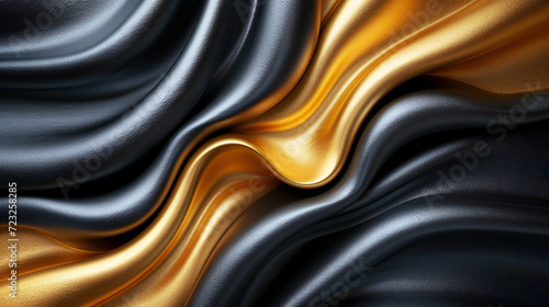 © lesikvit, Obraz premium Luxurious abstract black and gold wave. Abstract background frame. Generative AI