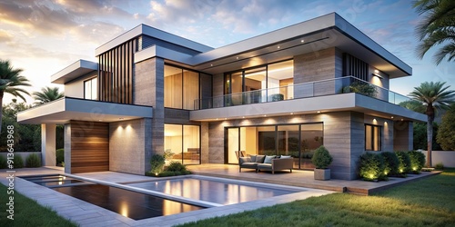 Fototapeta premium Luxurious and modern render of a villa house exterior, luxury, villa, house,...