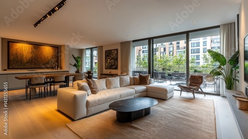 Fototapeta premium Luxurious Apartment Living Room with City View