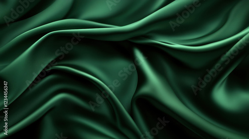 © Shozib, Obraz premium Luxurious background design with flowing green silk or satin cloth