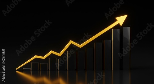 Fototapeta premium Luxurious black-and-gold business success graph with sleek reflections,...