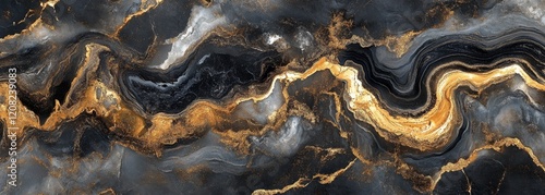 Fototapeta premium Luxurious black and gold marble texture. Very wide background