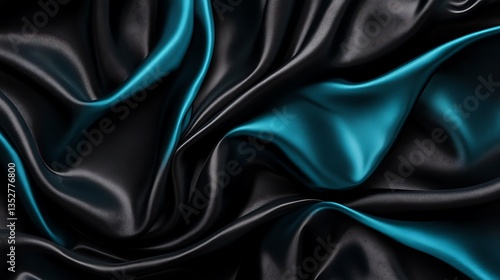 © Artelio, Obraz premium Luxurious Black and Teal Silk Fabric Texture