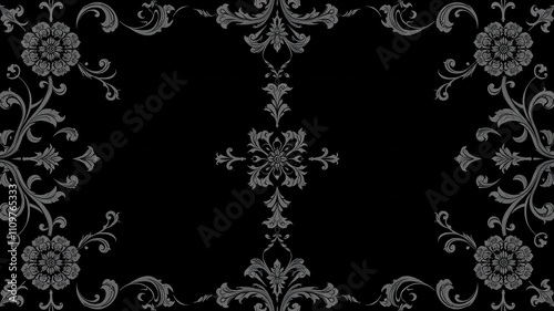 Fototapeta premium Luxurious black charcoal floral wallpaper with intricate design, intricate, sophisticated