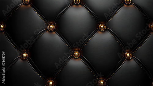 Obraz premium Luxurious black leather tufted pattern with shimmering gold buttons, elegant...