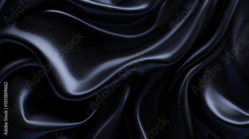Fototapeta premium Luxurious Black Silk Drape, Abstract Texture, Background Fabric
