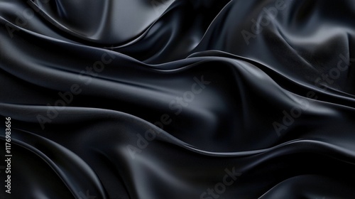 Fototapeta premium Luxurious Black Silk Fabric with Smooth Texture and Elegant Drapes Ideal for Fashion, Decor, and Textile Projects in High Quality