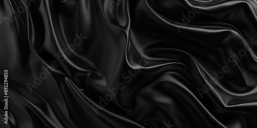 Fototapeta premium Luxurious Black Silk Satin Background with Flowing Fabric Waves, Perfect for...